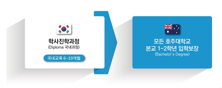 첫번째로, 호주 디플로마(Diploma) 국내과정 (호주대학교 학사진학과정)을 수료하는 것입니다.